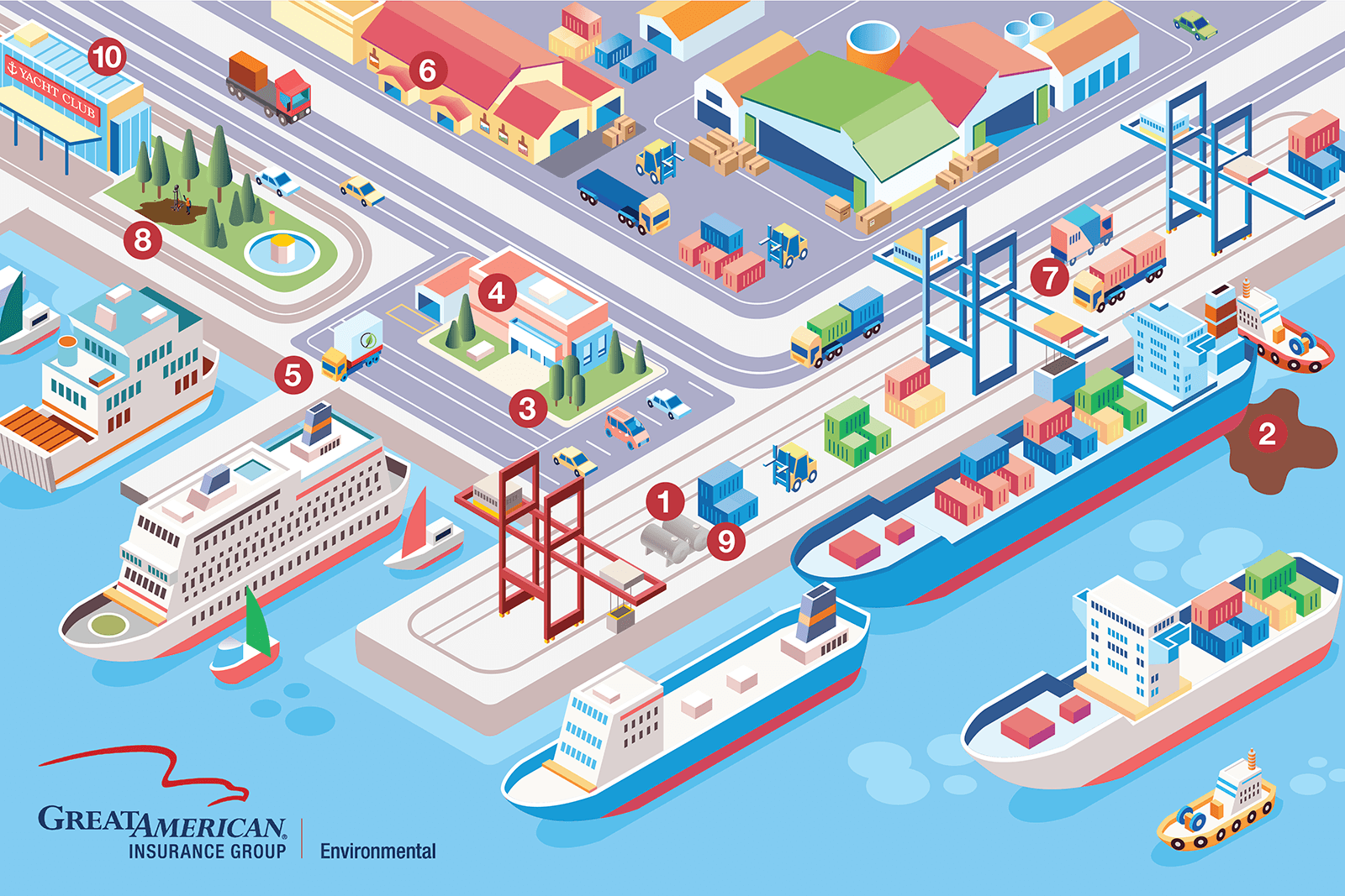 We know the unique challenges that maritime industry professionals face in their line of work. Environmental pollution risks can have disastrous effects on a business’s bottom line and reputation. Whether it is a diesel release during fueling or sewage discharge from vessels, marine operations may pose an array of environmental exposures. The Ocean Marine Riskopolis showcases some of these exposures that could be detrimental to your clients’ businesses.